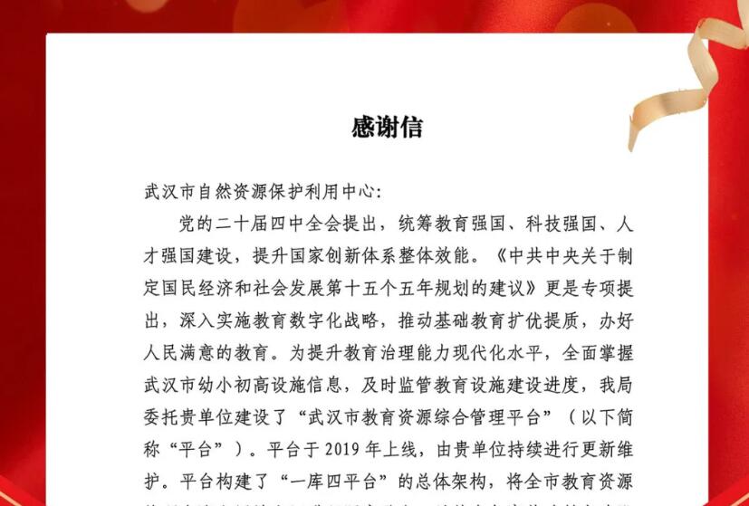持续赋能教育发展,中心再获武汉市教育局来信感谢